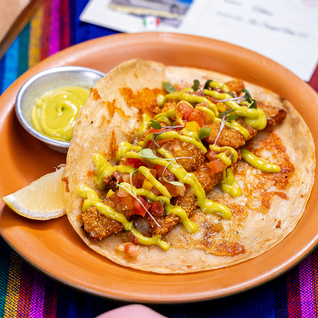 • Pollo Crocante Yucatán - frango crocante com geleia de abacaxi e abacate;