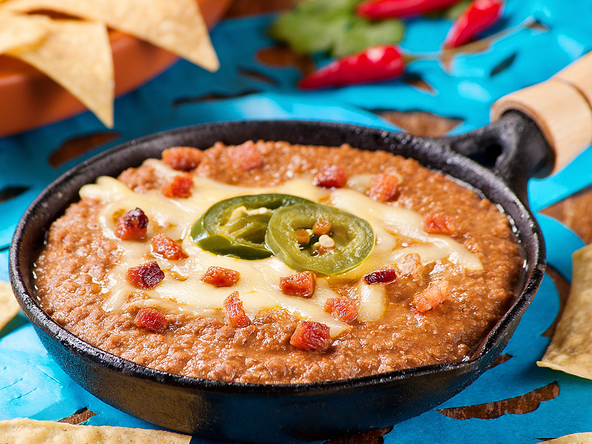 Servida em uma charmosa panela de ferro, essa combinação traz um chili de carne moída com especiarias mexicanas, coberto com queijos derretidos, jalapeño e pedacinhos de bacon crocante.